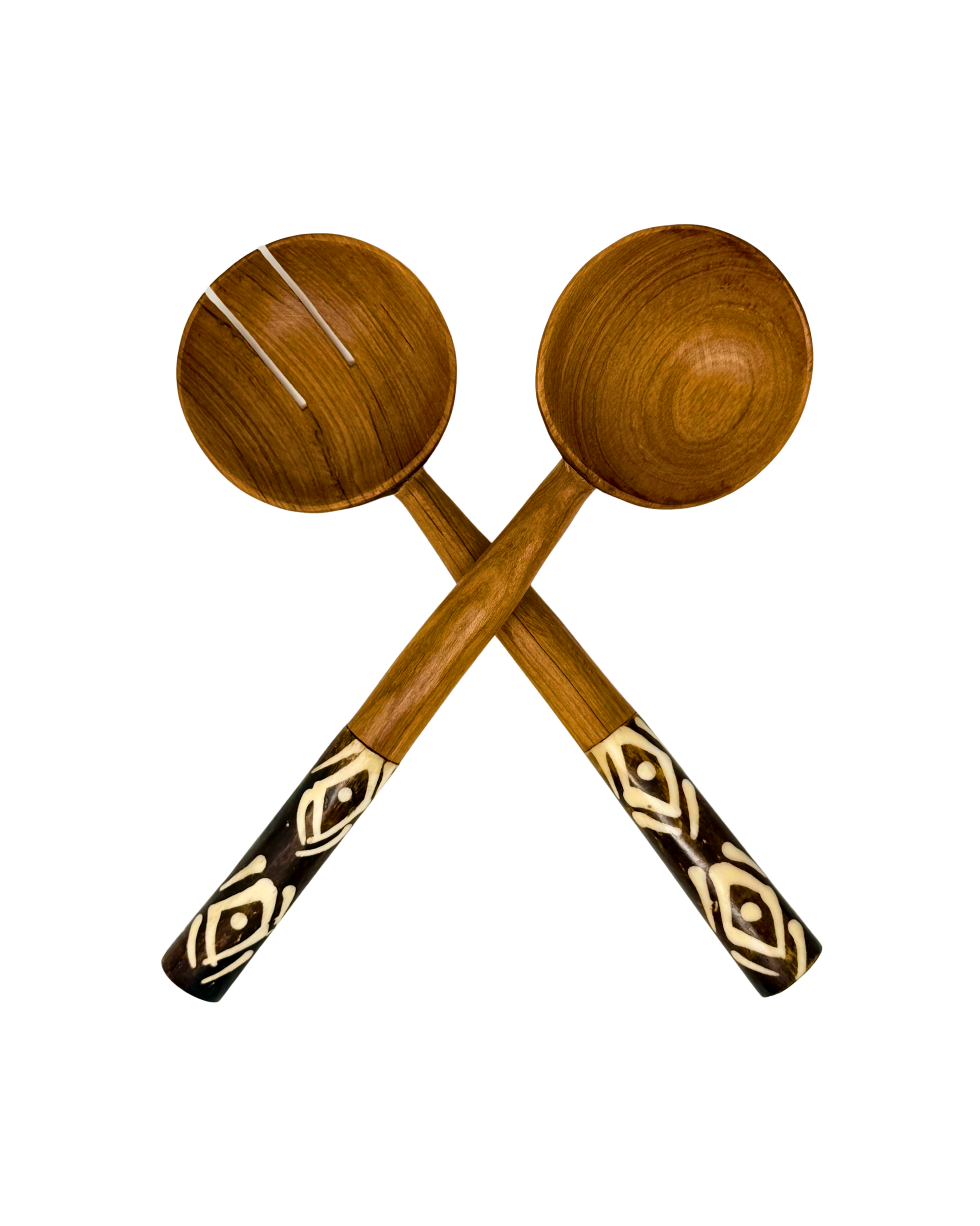 Bring some flair to your table with the Batik Olive Wood Salad Server Set (2 pcs)! Handcrafted in Kenya, these sturdy olive wood servers feature sustainably sourced cow bone handles with a bold batik pattern. Perfect for tossing salads or serving pasta, they make every meal a little more fun, stylish, and effortlessly elegant.